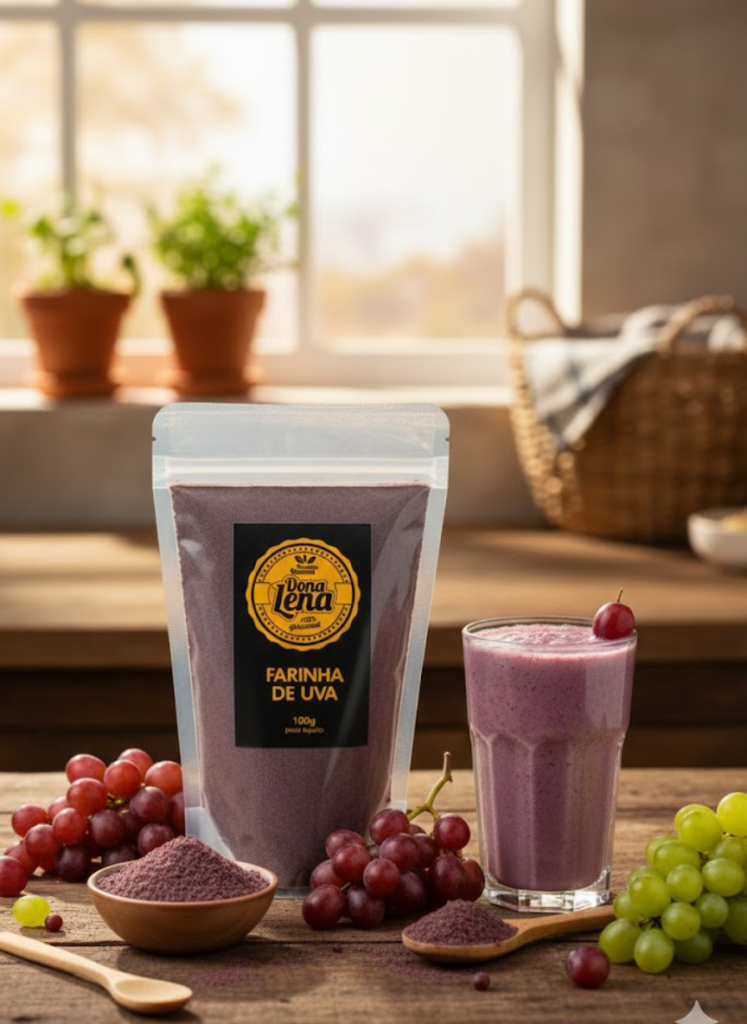 Versátil e fácil de usar, a farinha de uva pode ser incorporada a sucos, vitaminas, iogurtes e diversas receitas. Ela agrega valor nutricional, funcionalidade e um toque natural às preparações, sendo uma excelente opção para quem busca uma alimentação mais equilibrada, rica em fibras e antioxidantes.