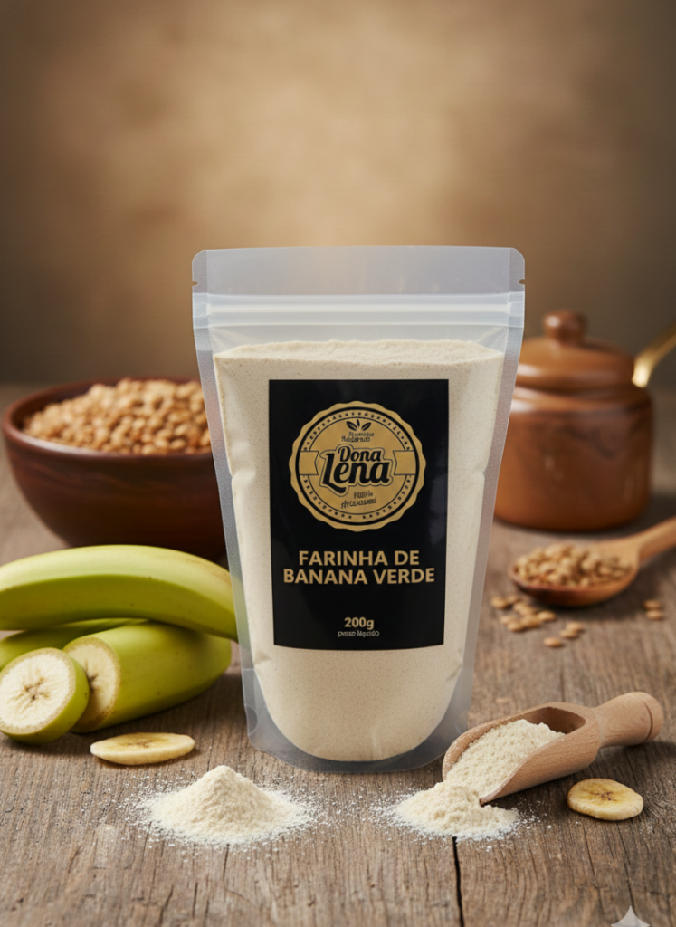 A farinha de banana é um ingrediente natural e funcional, obtido a partir da banana verde, reconhecida por seu alto teor de fibras e por suas propriedades benéficas à saúde. Rica em amido resistente, ela auxilia no bom funcionamento do intestino, contribuindo para o equilíbrio da flora intestinal e para uma digestão mais saudável.